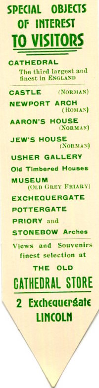 England Commerce Lincoln Cathedral Store Book Mark 1929