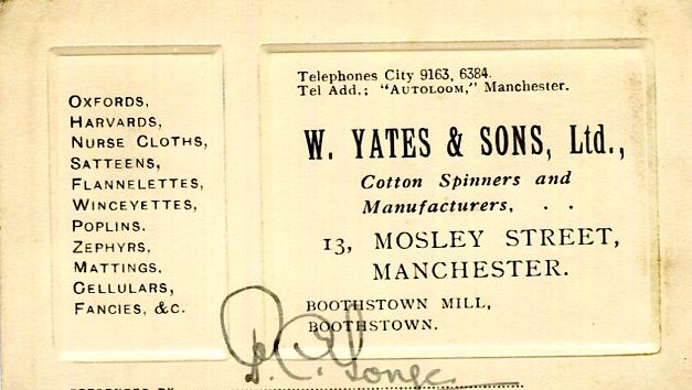 England Commerce Manchester W. Yates & Sons Business Card Attire 1933