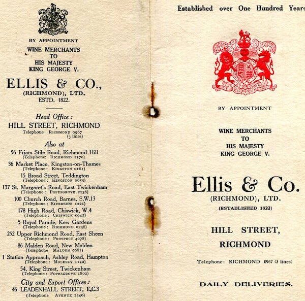England Commerce Richmond Ellis & Co Brochure Wines 1925 Front
