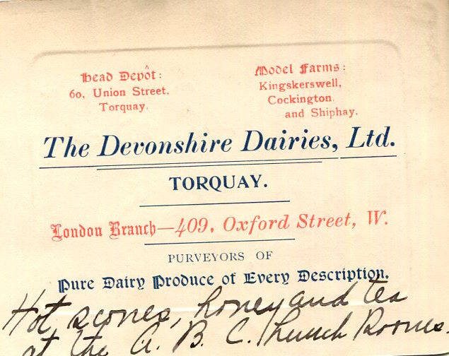 England Commerce Torqay Devonshire Dairies Business Card 1905