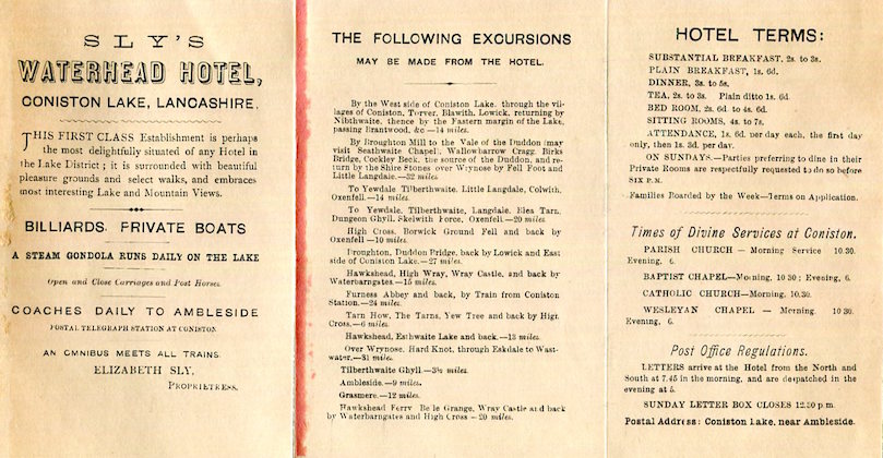 England Lancashire Slys Waterhead Hotel Leaflet 1883 Back