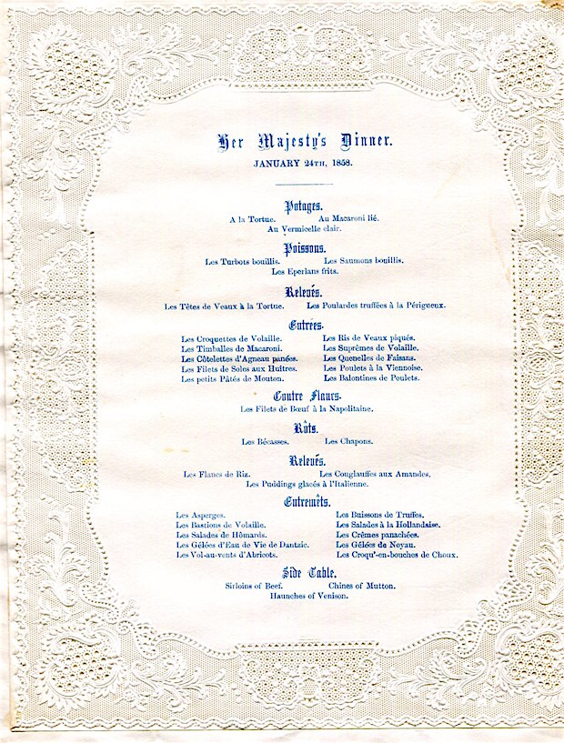 England English Royalty Buckingham Palace Menu Pre-Wedding Dinner Of Princess Alexandria Victoria 1858