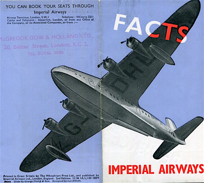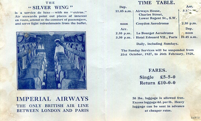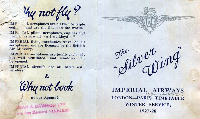 England Transport British Airways Leaflet Silver Wing 1927 Back