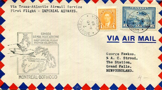 England Transport British Airways Envelope First Flight Montreal Botwood 1938