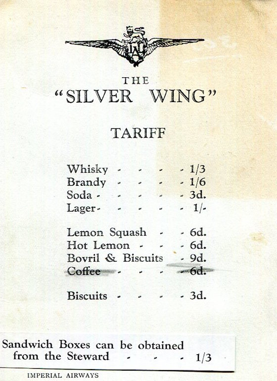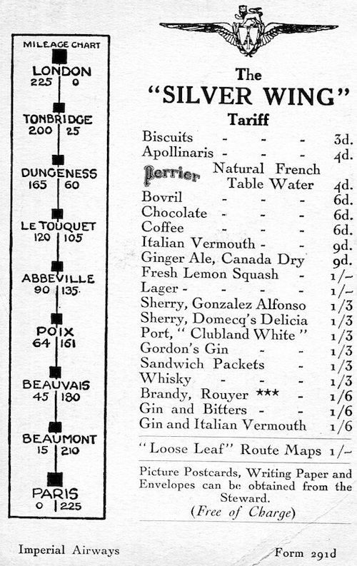 England Transport British Airways Leaflet Liquor Price List Silver Wing 1930