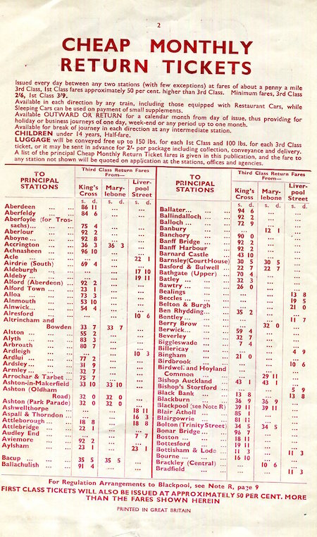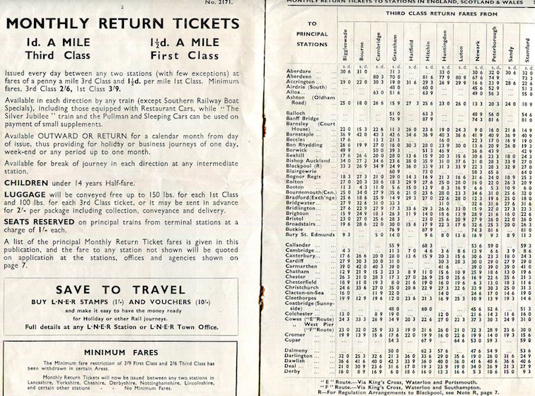England Transport Railroad LNER Brochure Return Tickets 1940 Inside