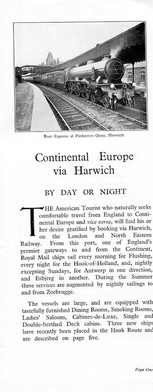 England Transport Railroad LNER Brochure Harwich 1928 Front