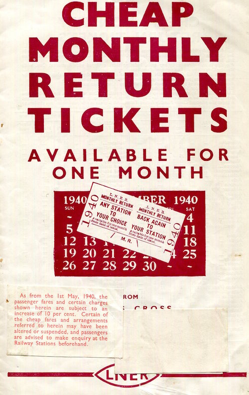 England Transport Railroad LNER Brochure Return Tickets 1940 Front