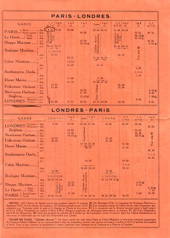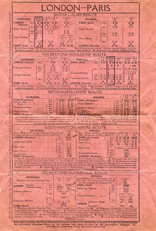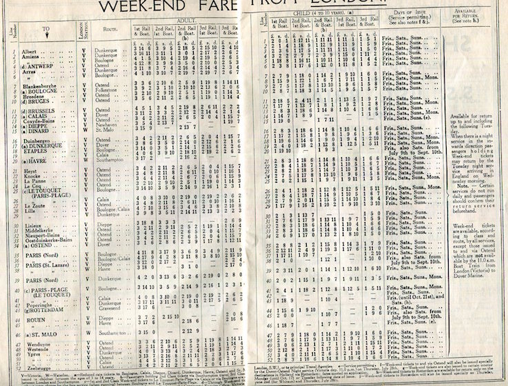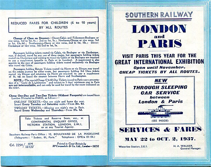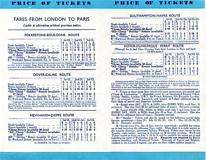 England Transport Railroad Southern Brochure Fares Golden Arrow Paris London 1930 Back