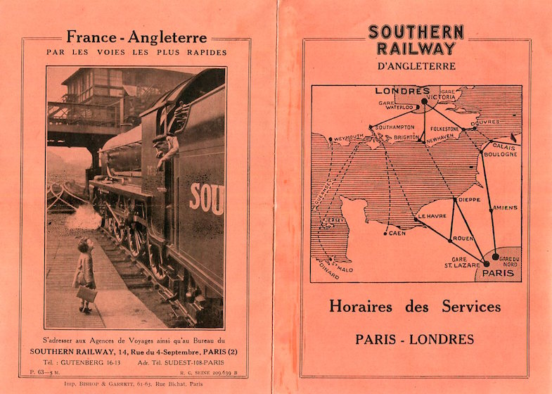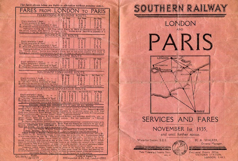 England Transport Railroad Southern Brochure Fares Golden Arrow Paris London 1930 Front