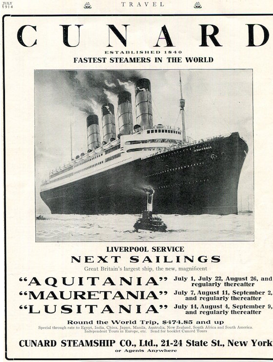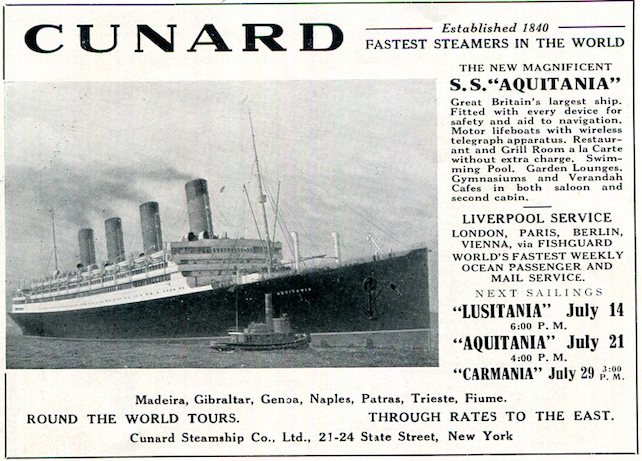 England Transport Steamship Cunard Line SS Aquitania Ad 1914-1