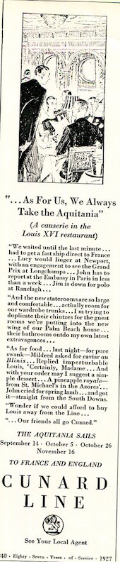 England Transport Steamship Cunard Line SS Aquitania Ad 1927