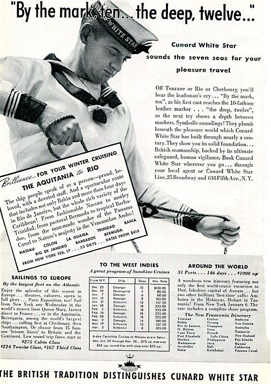 England Transport Steamship Cunard Line SS Aquitania Ad 1938