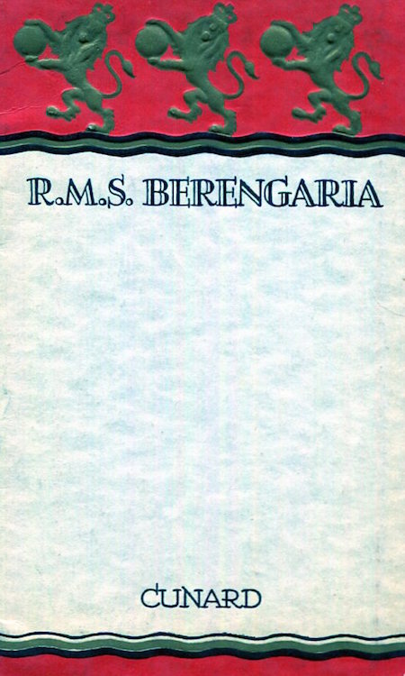 England Transport Steamship Cunard Line SS Berengaria Menu 1922-3 Front
