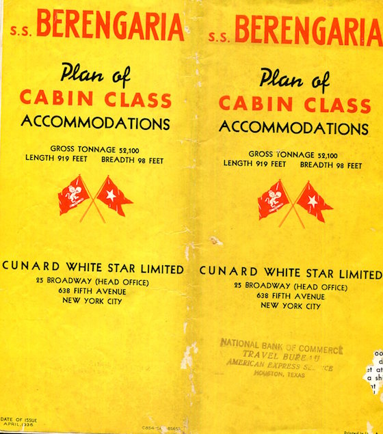 England Transport Steamship Cunard Line SS Berengaria Deck Plans 1936 Front