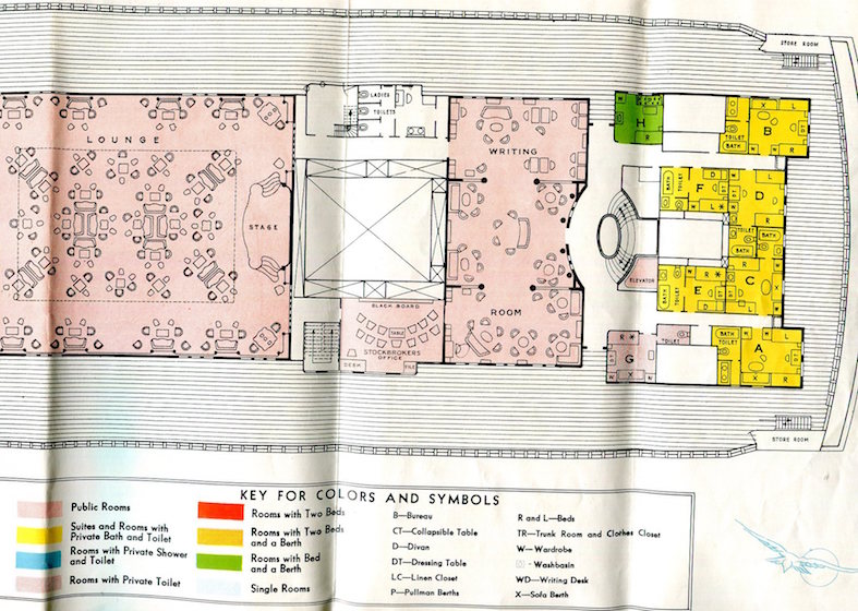 England Transport Steamship Cunard Line SS Berengaria Deck Plans 1936 Inside