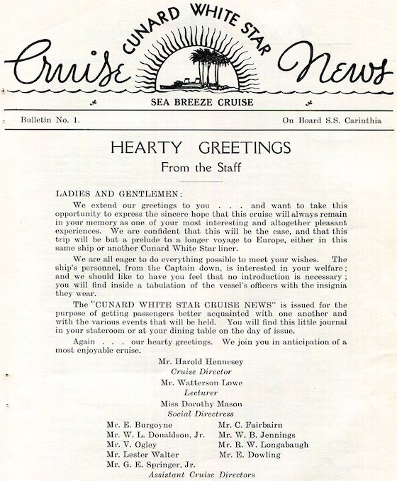 England Transport Steamship Cunard White Star Line SS Carinthia Brochure West Indies Cruise Souvenir 1938 Inside 1