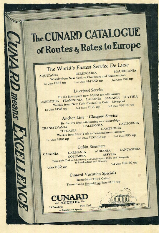England Transport Steamship Cunard Line Brochure 1926 Front