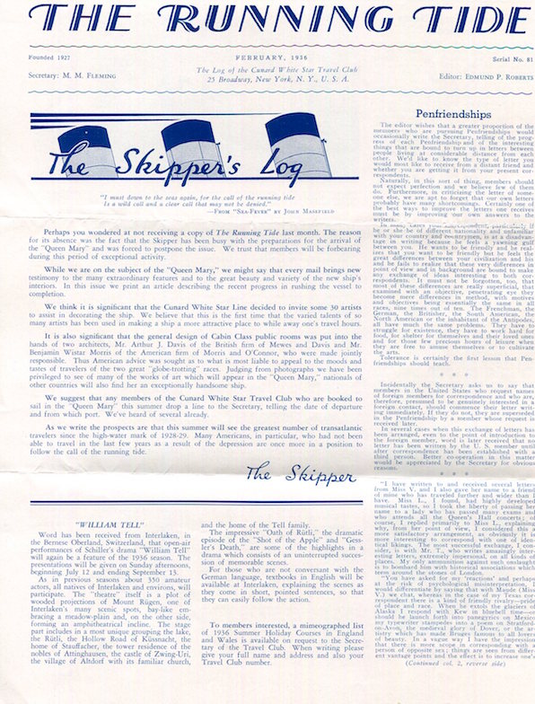 England Transport Steamships Cunard Line SS Queen Mary Advertising Leaflet Running Tide 1936 Front