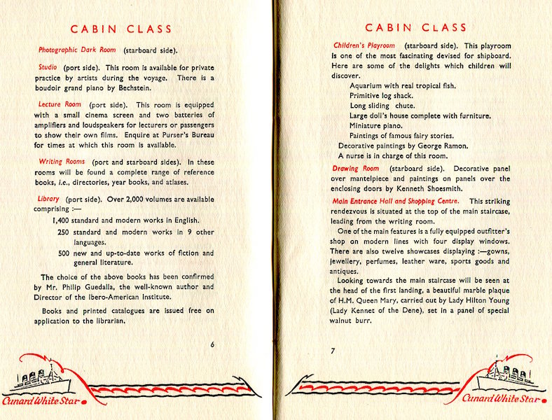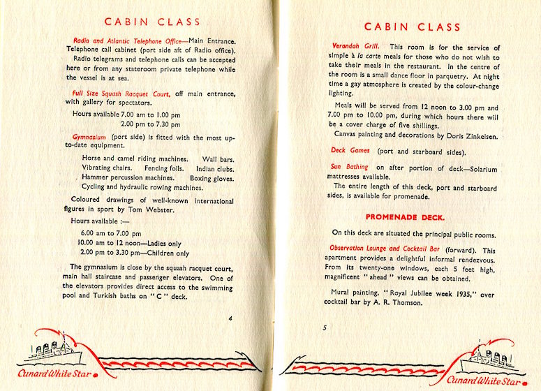 England Transport Steamships Cunard Line SS Queen Mary Brochure 1936-2 Inside 4