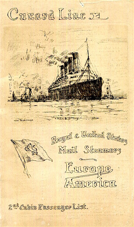 England Transport Steamship Cunard Line SS Laconia Passenger List 1912 Front
