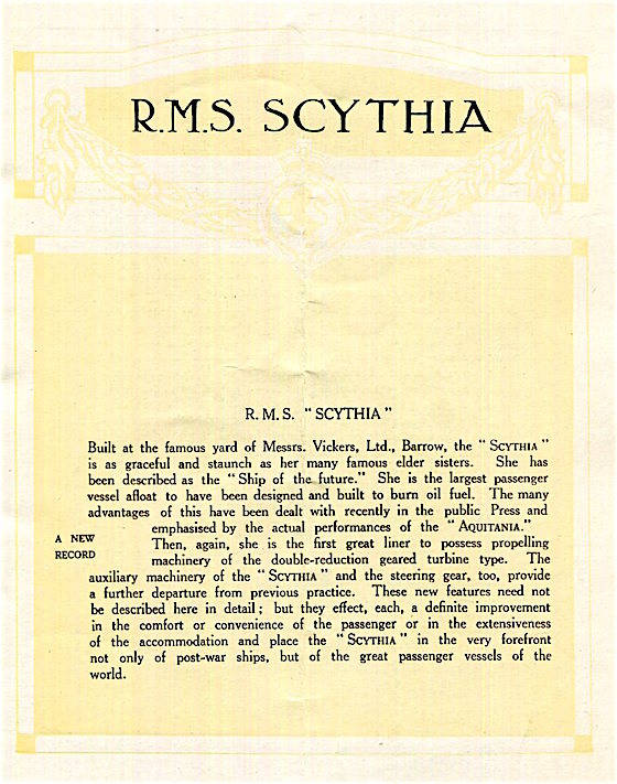 England Transport Steamship Cunard Line SS Scythia Brochure 1920 Front