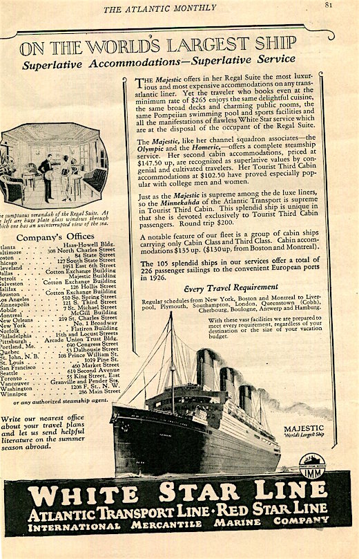 England Transport Steamship White Star Line Ad 1926