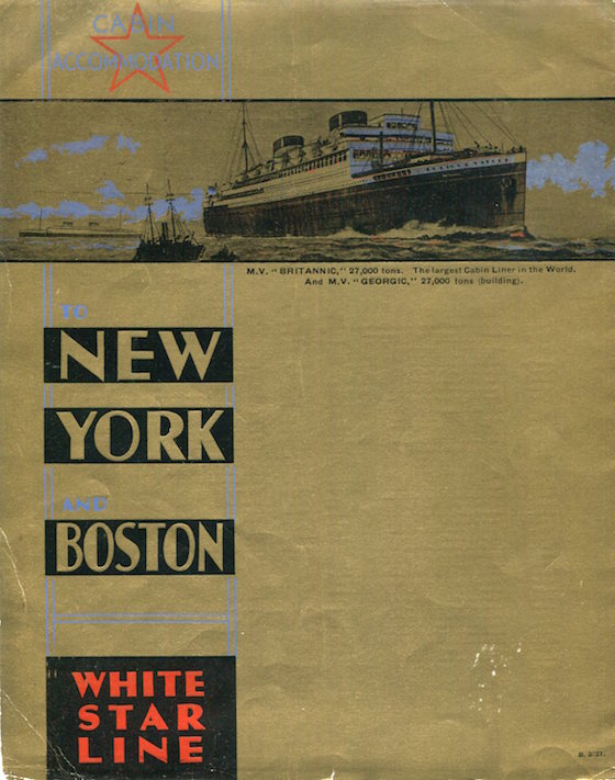 England Transport Steamship White Star Line Brochure Cabin Class 1922 Front