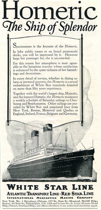 England Transport Steamship White Star Line SS Homeric Ad 1925-4