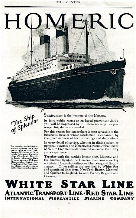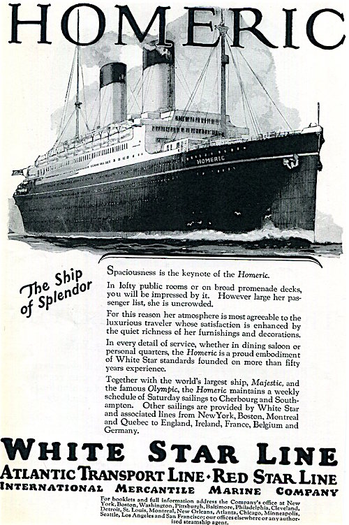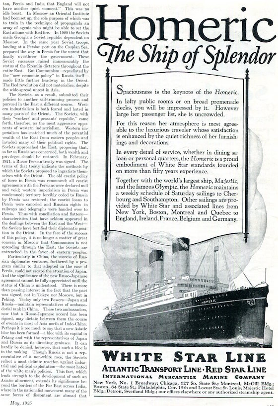 England Transport Steamship White Star Line SS Homeric Ad 1925-2