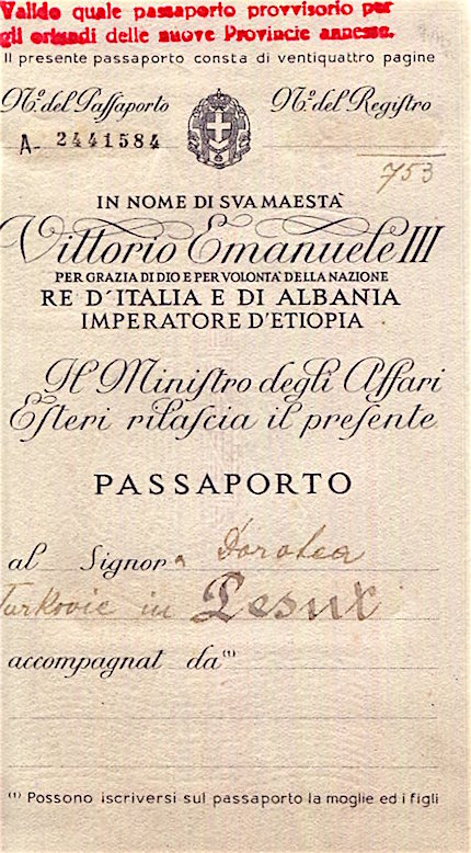 Italy Passport C. Zagra King Of Albania Emperor Of Ethiopia 1943 Front
