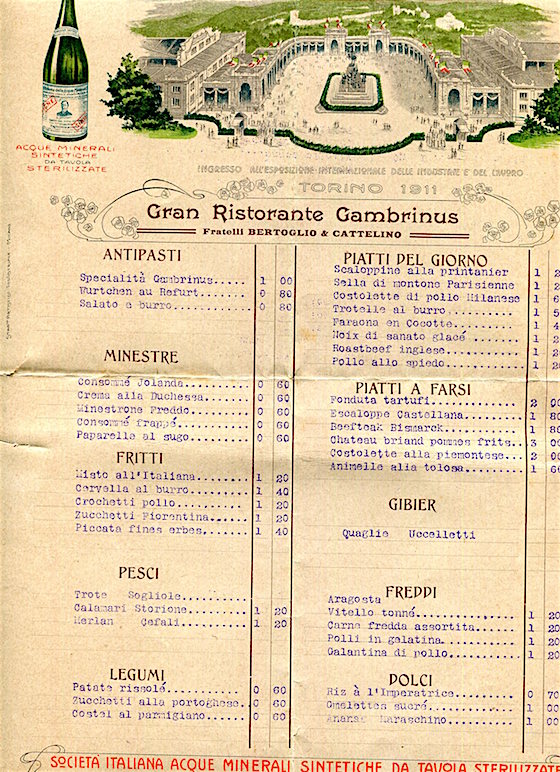 Italy Turin Gran Restaurant Cambrinus Menu 1911