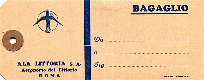 Italy Transport Air Ala Littoria Luggage Tag 1930