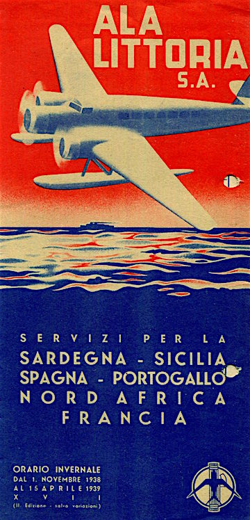 Italy Transport Air Ala Littoria Time Table 1938-1939 Front