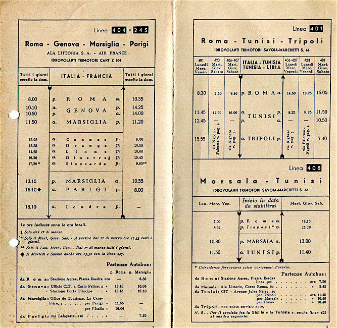 Italy Transport Air Ala Littoria Time Table 1938-1939 Inside