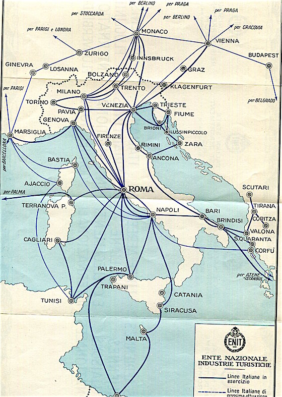 Italy Transport Air Italian Airlines Map 1938 Inside