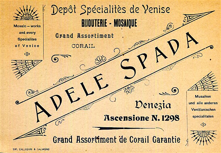 Italy Venice Commerce Adele Spada Business Card Coral 1910