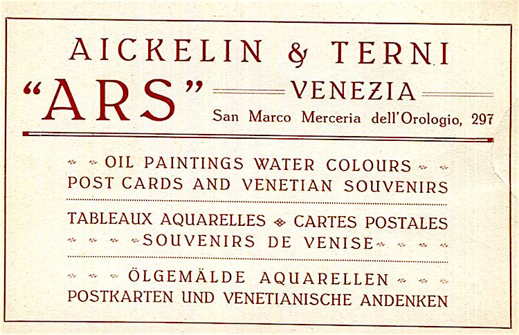 Italy Venice Commerce Aickelin & Terni Business Card Souvenirs 1933