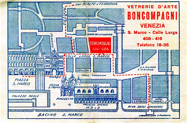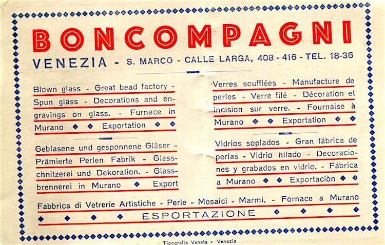 Italy Venice Commerce Boncompagni Business Card Glass 1934 Back