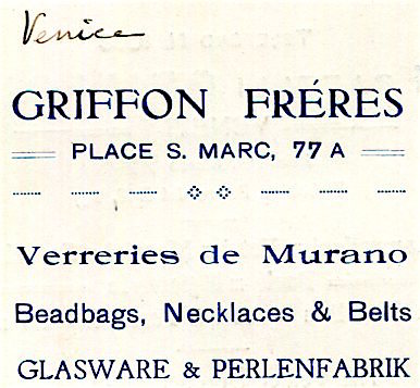 Italy Venice Commerce Griffon Fréres Business Card Beaded Bags 1927