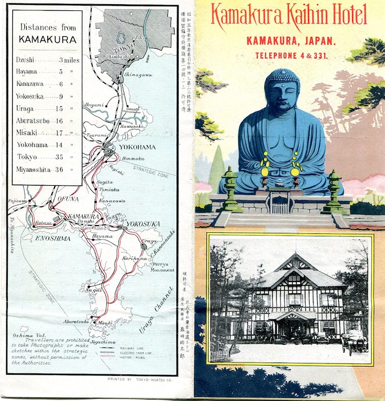 Japan Kamakura Menu Kaihin Hotel 1937