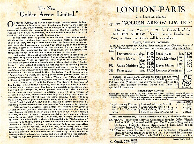 CIWL Golden Arrow Brochure 1929 Front