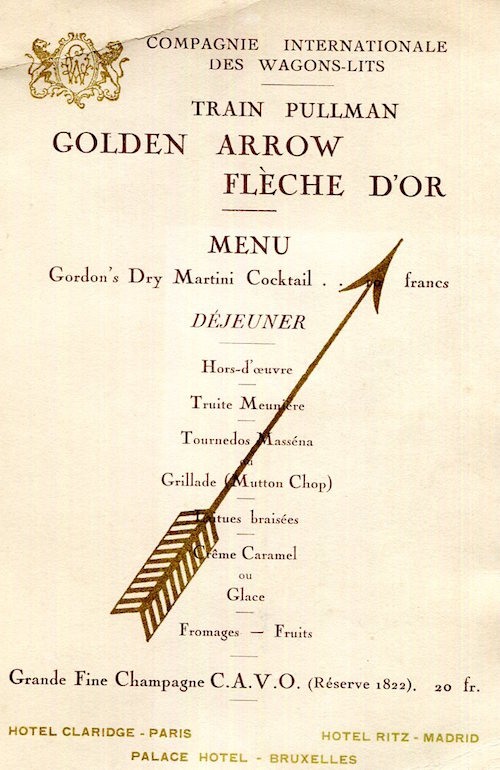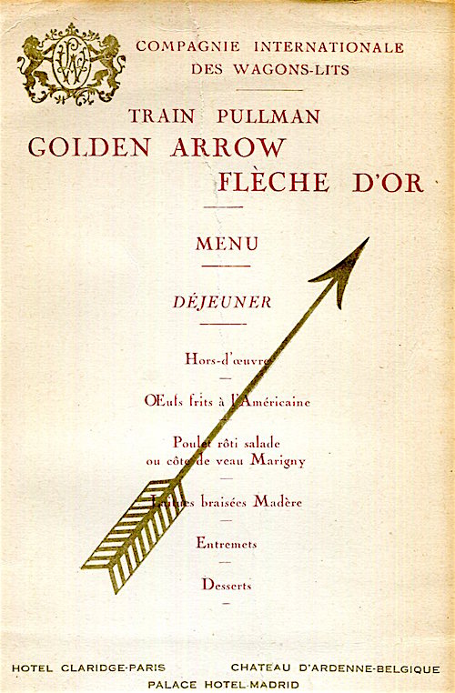 CIWL Golden Arrow Menu 1930