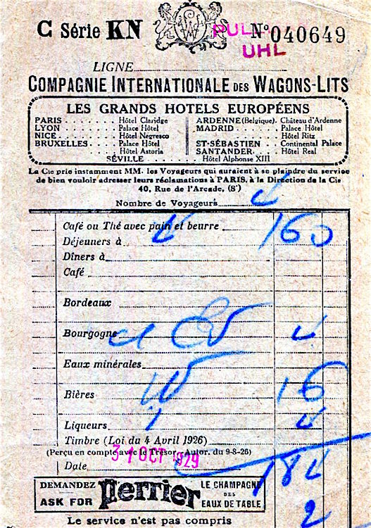 CIWL Golden Arrow Receipt 1929