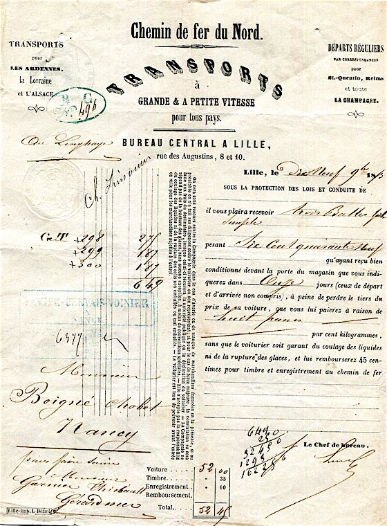 CIWL Nord Express Receipt 1853