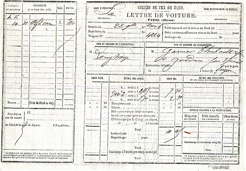 CIWL Nord Express Receipt 1872