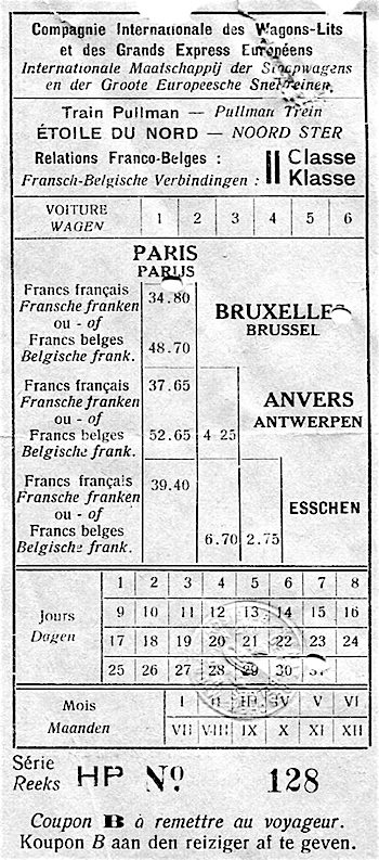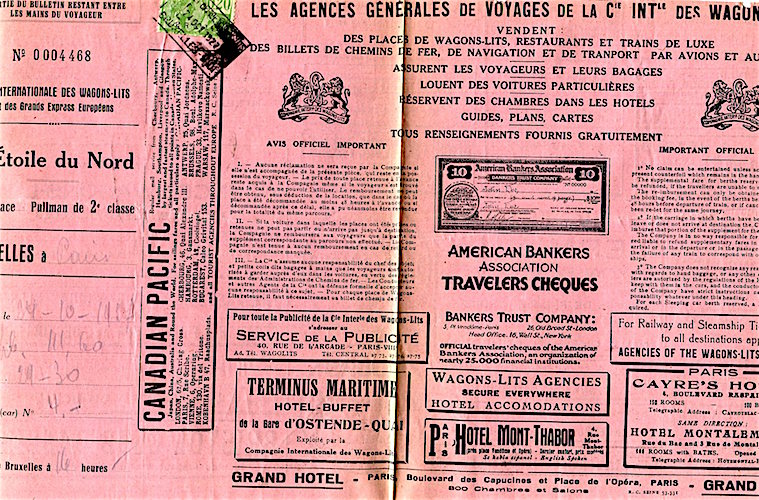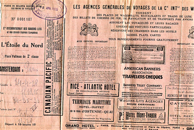 CIWL Nord Express Ticket Receipt 1928 Front