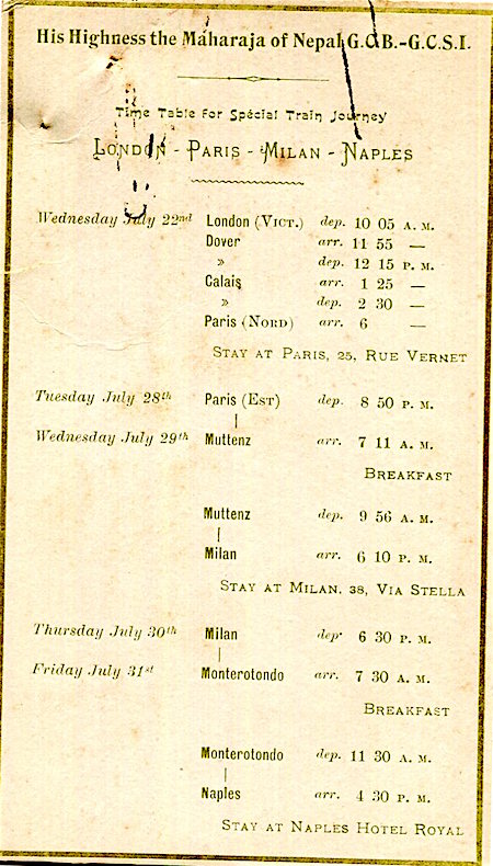 CIWL Royal Train His Highness Th Maharaja Of Nepal Shedule London Paris Milan Naples 1910