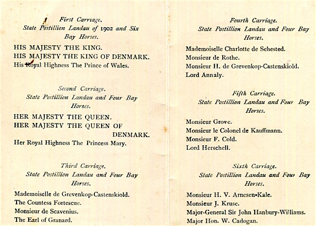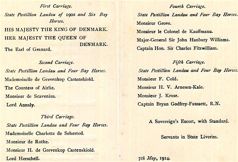 CIWL Royal Train King & Queen Of Denmark London Royal Opera Performance Order Of Carriage Procession 1914 Back