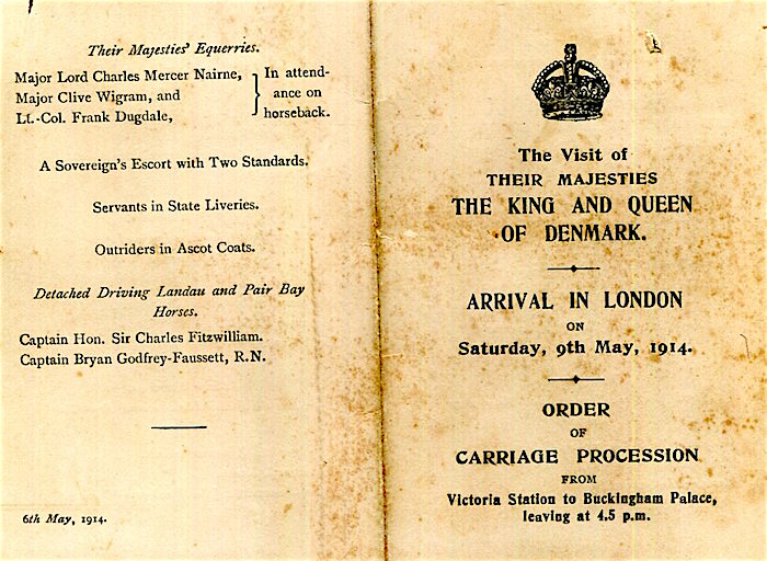 CIWL Royal Train King & Queen Of Denmark Arrival In London Brochure Order Of Carriage Procession 1914 Front